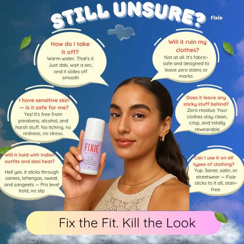 Discover the body adhesive that adjusts your outfit to your body — no slips, no stress. Whether you're wearing off-shoulders, sarees, or slitted dresses, Fixie Body Adhesive Roller keeps everything comfortably in place, all day long.
